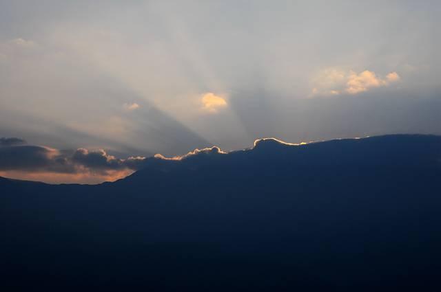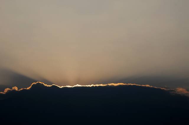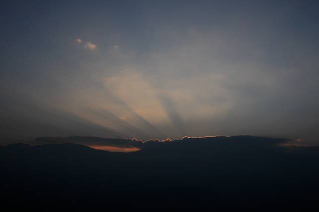 8:00多到了落霞沟,支好架子等日出。天边的云层有些厚,落霞沟的梯田也灰蒙蒙一片看不真切。今天的日出比较一般,8:30太阳才出来,没有出现的彩霞。等日出后我发现阳光依然照不到落霞沟,仔细一想才注意到光线的方向。这里地势低,只适合看日落,不适合看日出。