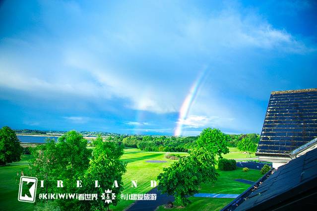 早晨一缕阳光投射进房间,用双手拉开窗帘,难得爱尔兰的天空放晴,阳光温暖,空气清新自然,远远的地平线上出现两道彩虹,这是大自然的馈赠,倚着栏杆欣赏这蓝天碧草下的美丽风光,感觉好兴奋。