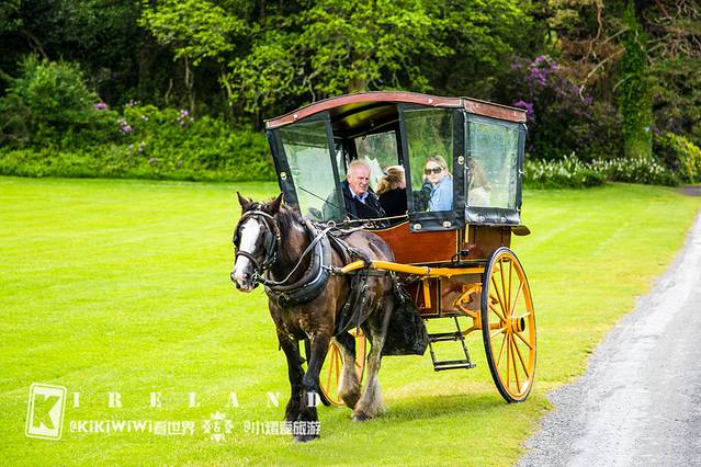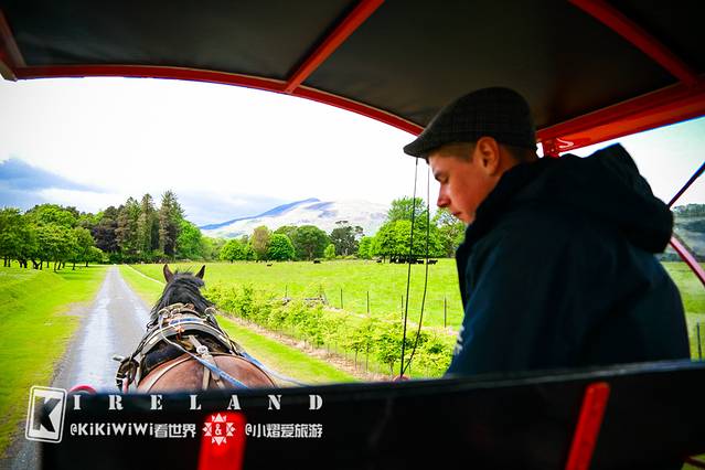 下起小雨的景致也十分动人,春日嫩绿覆盖整个国家公园,品种多样的植被把庄园点缀得格外富有生气,爱尔兰传统小马车悠哉悠哉得在如茵草地奔跑,爱尔兰的阳光似乎非常欢迎我们的到来,一阵小雨过后,太阳渐渐剥开乌云露出灿烂笑容,身体也温暖了起来。