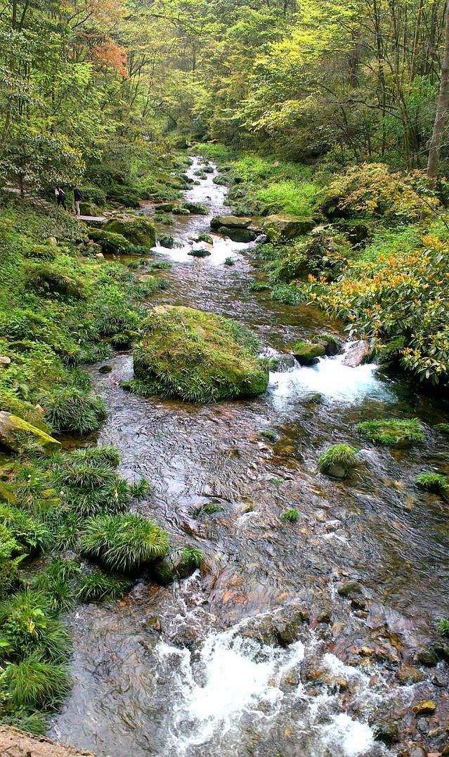 金鞭溪其实是穿梭在群山之间,一条小溪蜿蜒前行,抬头就是群山之间