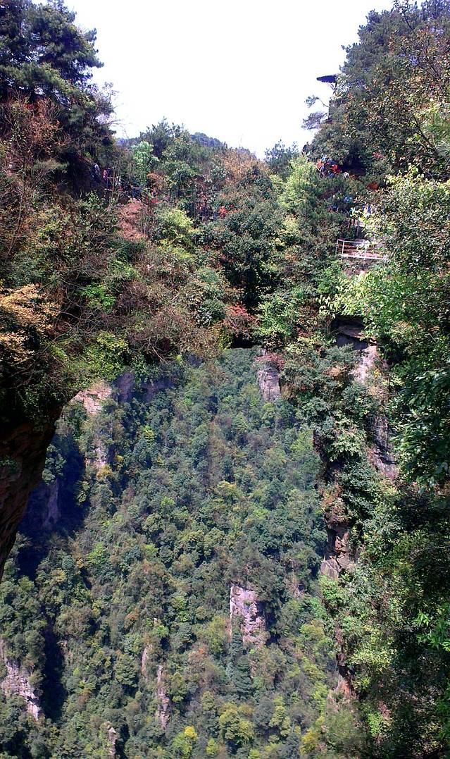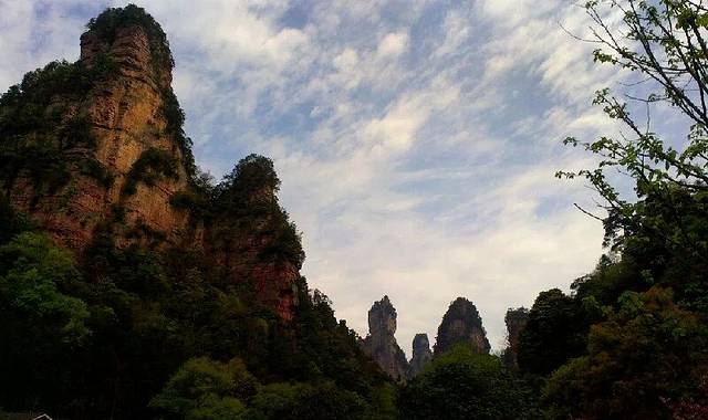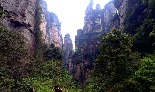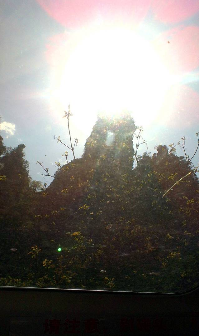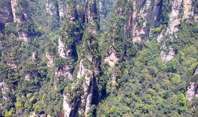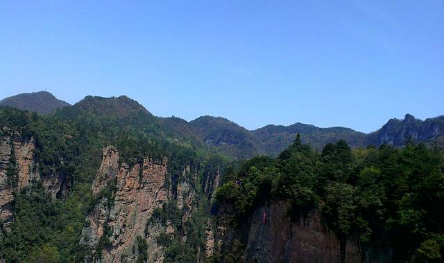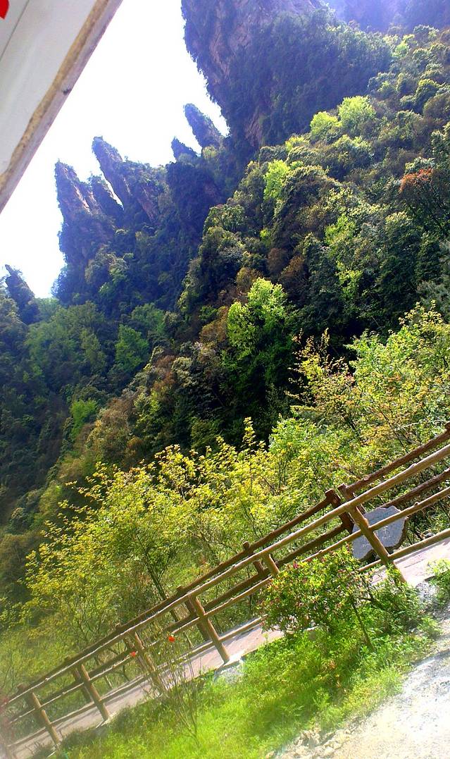 我们就直接坐到袁家界那边去了,一上山满眼都是山,不过形状倒是很特别,一根根的,听说以前这里是海底