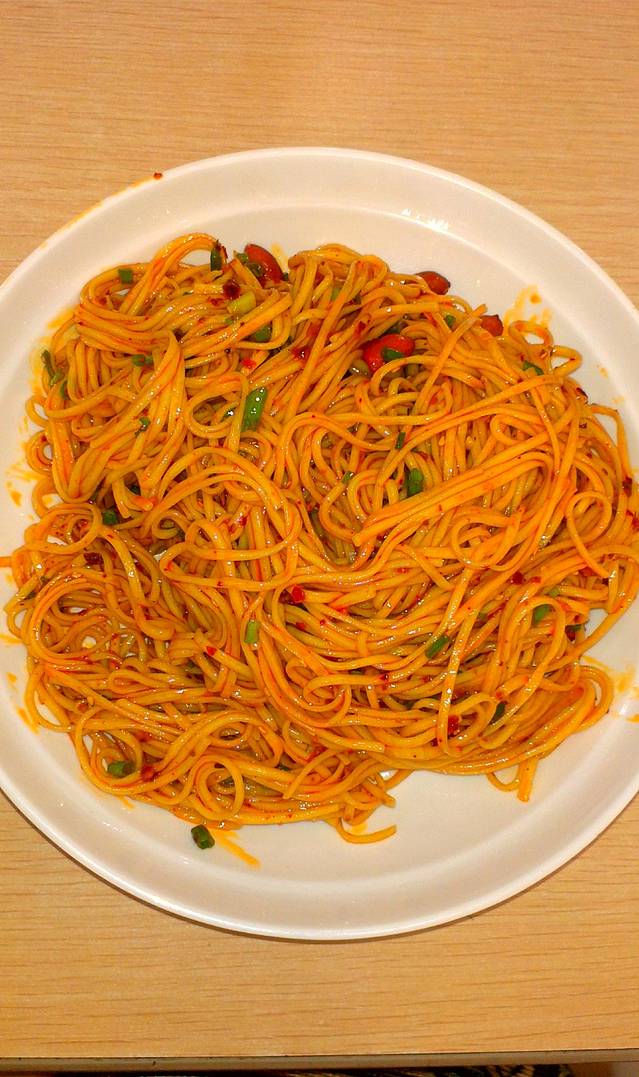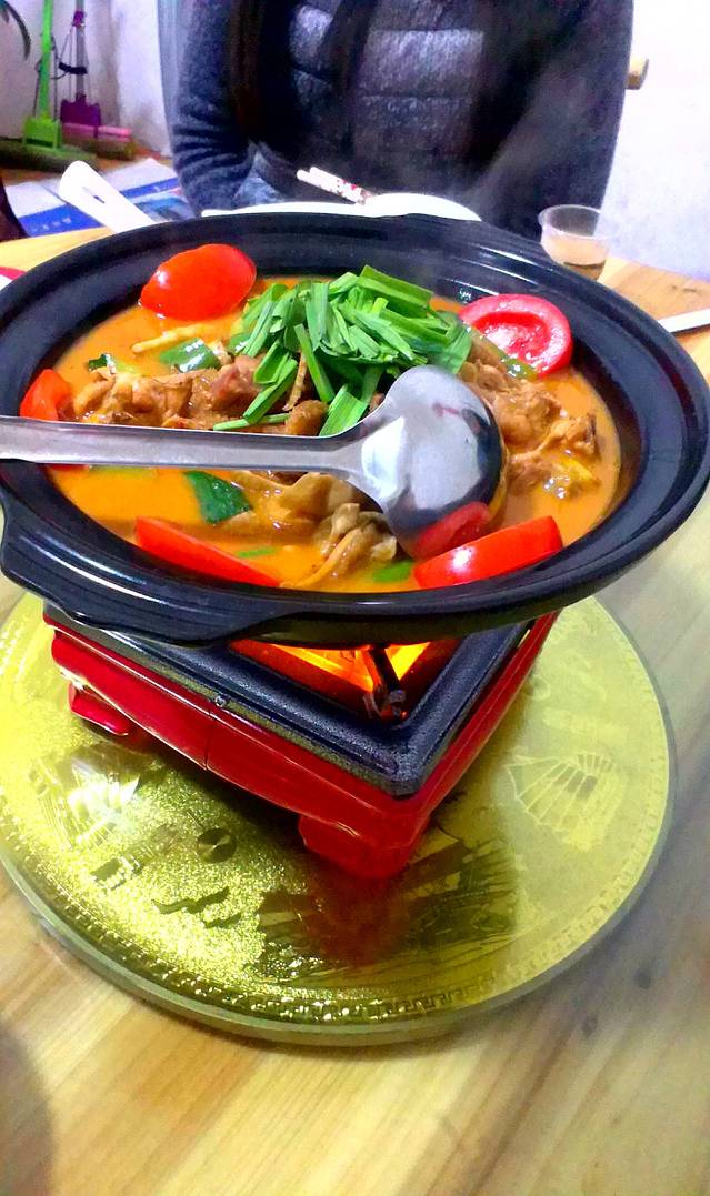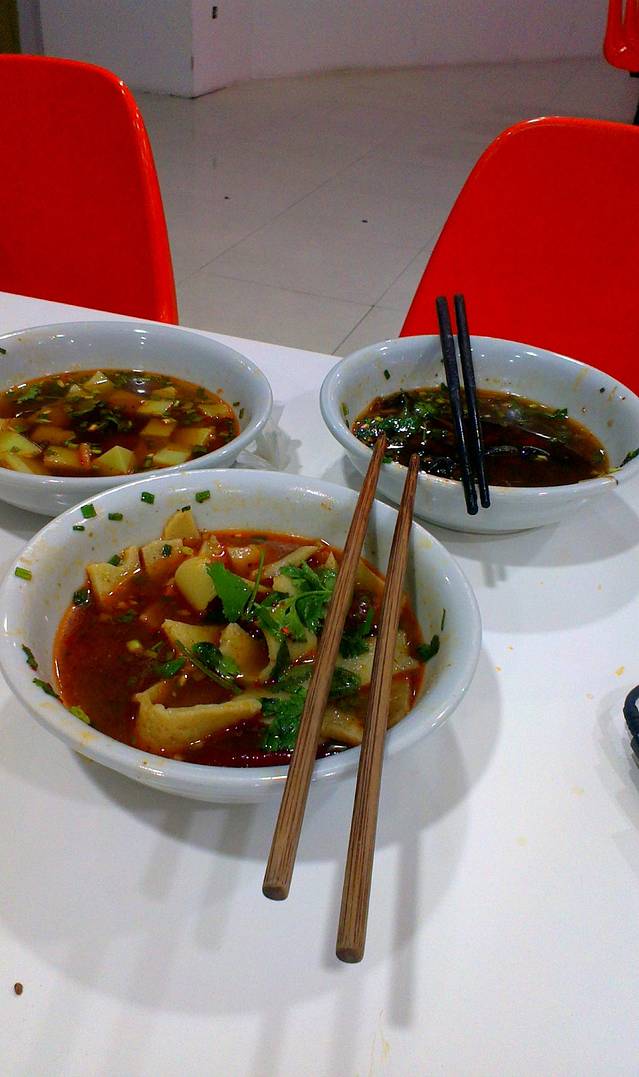 这三碗红到骇人的东西,吃之前太饿要不及拍,将就看看吧,这三碗分别是绿豆面,蕨根粉,米豆腐,都不是我们的口味,蕨根粉滑滑的有点像凉粉,绿豆面很硬,但是都很辣。