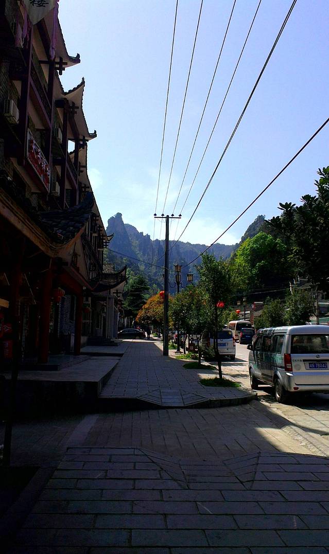 往前走就是天门山门票站,两边都是住宿的地方,一进去就有上山的免费巴士接到杨家界或者袁家界,人多有点难等,可以和别人拼车上山也就是几块钱一个人。