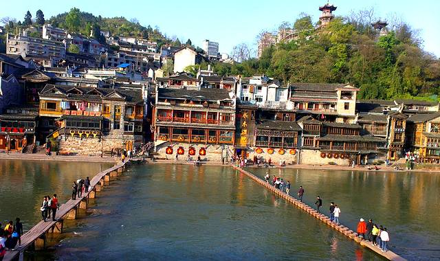 一大早我们就告别张家界去凤凰古城,车上还是很舒服的,一觉睡醒就到了凤凰,车上有人简单介绍凤凰,可以买份地图看看,至于他所推荐的那些篝火晚会什么的,看你个人需求咯。下车之后可以选择坐一元公交到古城也可以坐私家车5元进去,我们行李多且我们想住在沙湾风景区那边就选择了私家车进去,刚好是淡季,我们想选一家满意的旅馆住,所以没订就直接过去选了。