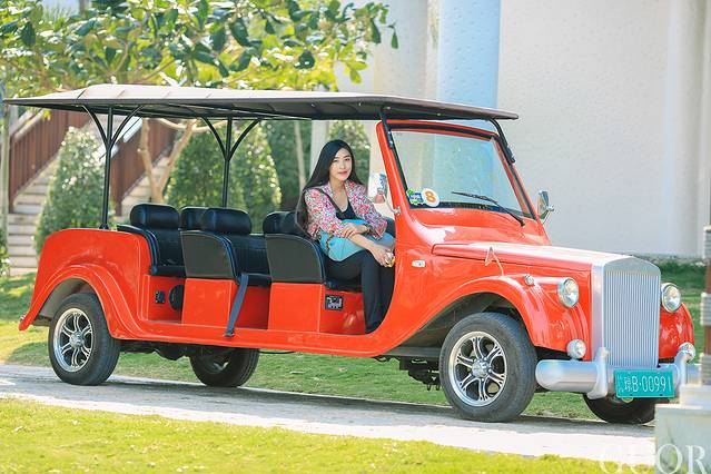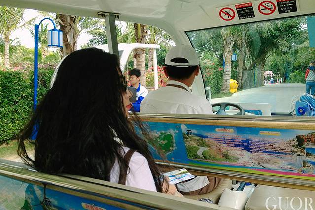 刚一上岸又有酒店的接待人员安排你乘电瓶车去酒店