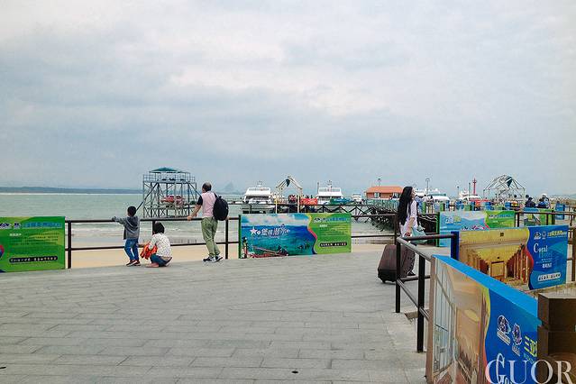 蜈支洲岛需要在海棠湾的一个码头乘船前往,我订的酒店有送免费的船票。一到码头就有酒店的接待台,会安排走VIP通道上船。