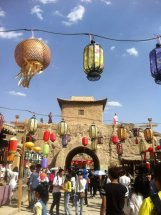 第二天我们早早就出发了 从银川市里坐红色小巴 平常是8元一个人 我们五一去的时候15元一个人 去的时候天气很好 蓝蓝的天加上西北风味的建筑 让人身临其境。成人票是100元 学生证75元 贵是贵了一点 不过里面很值得逛 分别为清城 明城和老银川一条街 我们前前后后加起来足足逛了7个小时 所以去的童鞋要安排好时间 最后一班回市里的小巴是下午6:30 不过五一人太多了我们是包车回市里的 大概是40-50元