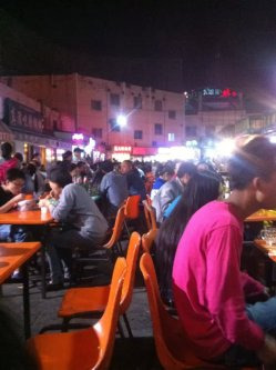 夏日晚上坐在小吃街里 聊着天 吃着烧烤 和啤酒 真的很惬意