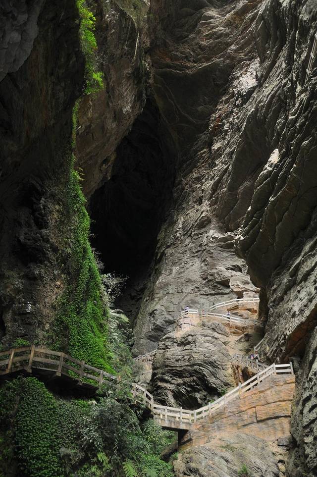 重庆-武隆,查看路线,想乘火车去的,但是,票早已被订完了,所以只得乘客车过去。其实,汽车也是很方便的,7:30酒店出发,乘坐轻轨到四公里交通枢纽,至武隆的汽车滚动发车,所以不用担心会等很久的问题,可是,这对于一个要晕车的人来说,接近三个小时的车程也会有那么兮兮痛苦的,不过还好,在高速公路的沿线还可以看到沿途美景,12:00左右到武隆县城;接着继续坐了将近一个小时的客车到仙女山。办理入住手续,本来请酒店联系了《印象武隆》的票,但是人太多了,到22:00的场次才有票,所以,有些遗憾的放弃了。提前在网上预订了天生三桥、龙水峡地缝、芙蓉洞的门票,所以15:00到游客中心后,不用排队买票,直接在自助取票机取票后乘车到天生三桥。深深的被天生三桥和龙水峡地缝给震撼了、壮观、神奇是一直萦绕在整个游览过程中。
