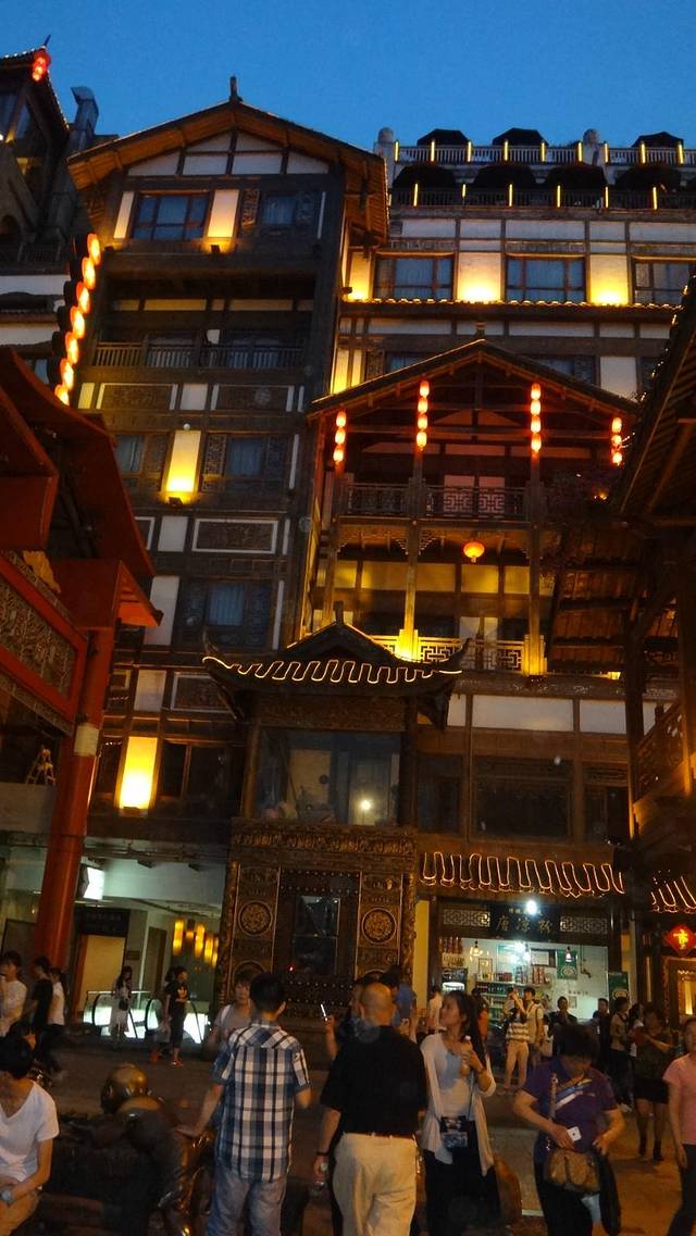 18:00两个人终于在预定的酒店回合了,在酒店简单的清洗后出发前往洪崖洞。酒店离洪崖洞实在是太近了,出了酒店后,右行过天桥就是洪崖洞了。晚上的洪崖洞是一种别样感觉,从顶楼一直逛到一楼,真正的领略了山城的与众不同。悠悠转转到了解放碑,这两个地方其实很近的,如果实在不行就跟着大多数人走的方向去就对了,在这里看到现代化大都市的繁华,高楼林立,各楼奢侈品将解放碑给围住。接着是前往心心念念的“小吃街”,真是吃货的福地啊,各类小吃尽有。吃的饱饱,回酒店养足精神,准备明天的出行。