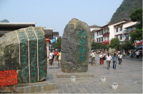 “桂林山水甲天下,阳朔堪称甲桂林” 。阳朔位于桂林市南面63公里,是最早确定的“国家级风景旅游名胜区”之一,是一座有2000多年历史的漓江边最美的城镇,媲美桂林,游人如云。不到一公里的阳朔西街,位于县城中心,全长517米,宽8米,大理石路面,呈弯曲的S形,房屋建筑古色古香,地方特色浓厚。荟萃各种旅游纪念品、小吃于街市。其充满了异国情调的夜景更是风情万种,风俗浓郁。