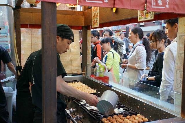 道顿崛的一家章鱼烧店,6个380日元,不算贵,排队的人超多