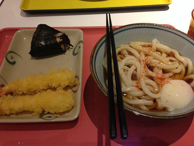 商场里吃的一碗乌冬面,饭团和炸虾口感新鲜。配着生卵吃,给我的冲击很大~回国后好想念这个味道