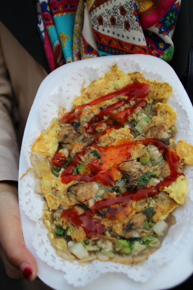 海蛎煎,在鼓浪屿里吃的,排队的人超级多,小哥的动作很快,经试吃,味道不错。