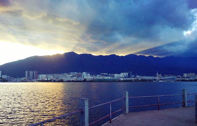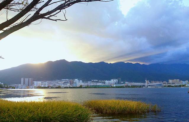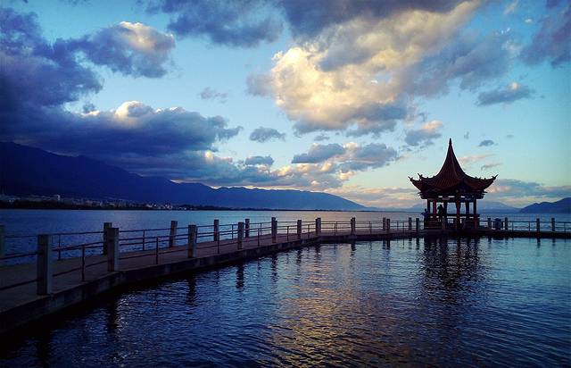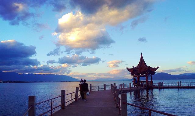 当时去我就被震惊了。简直太美。正好黄昏,余晖透过苍山上的云铺在洱海面上,像仙境一般。