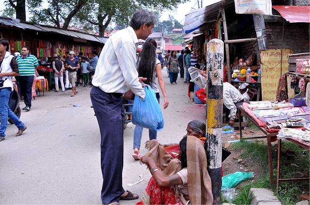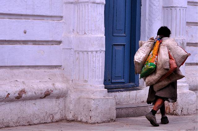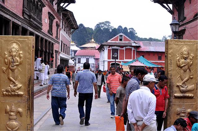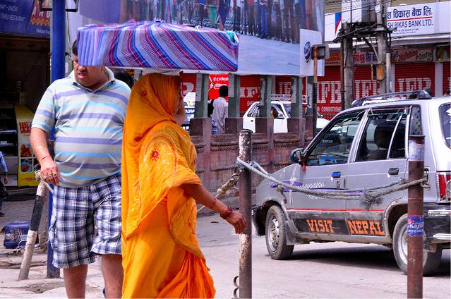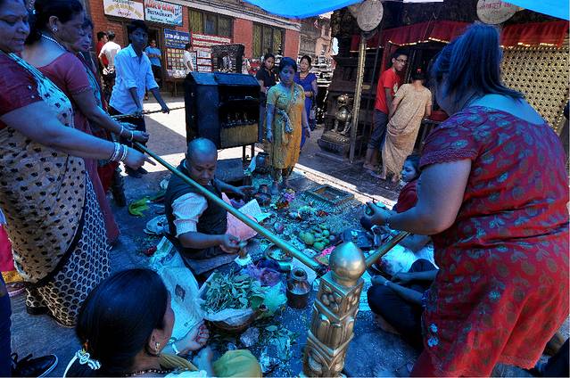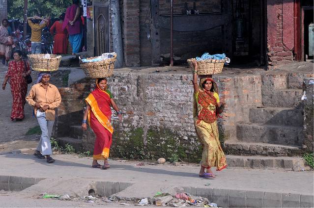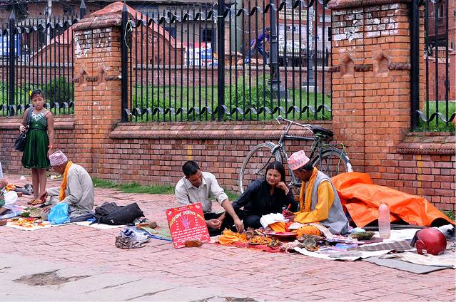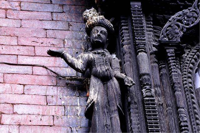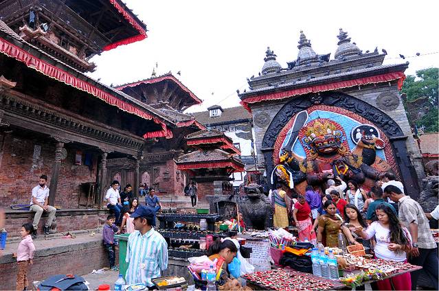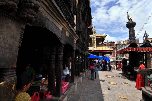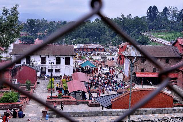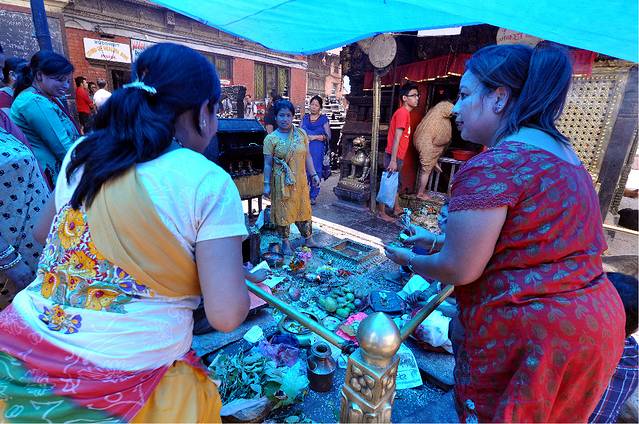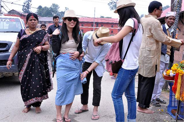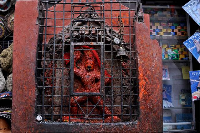 为了想再次逃票进入杜巴广场,俺和小吴早晨7点就出发前往加都的杜巴广场,步行了约20分钟,一路都是经过大大小小的菜市场,路很脏很难走;我还算是穿了登山鞋,小吴可是穿了一套花5000尼币新买的印度服,扭捏着穿行在潮湿肮脏的小巷中……到达杜巴广场的门口后发现,还是有工作人员在检查,发现外地的观光客就让你购票(750尼币,一点优惠没有,本地人100尼币,很没道理的规定),即使小吴穿着印度服也没办法逃票(她裸背着个相机)。