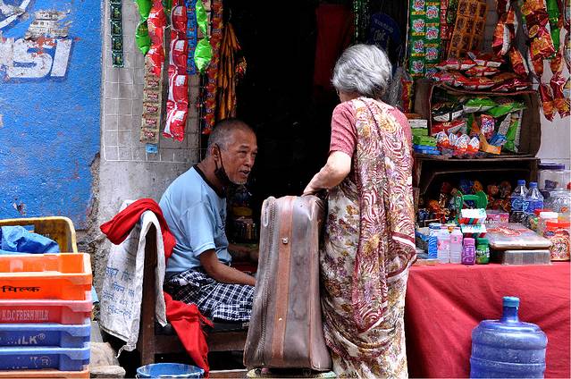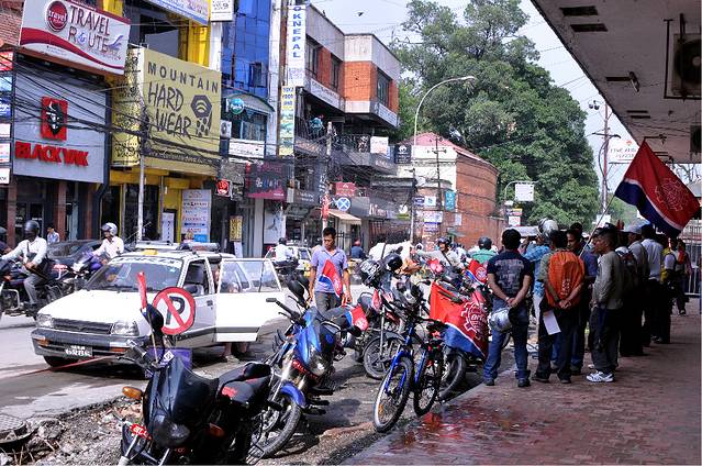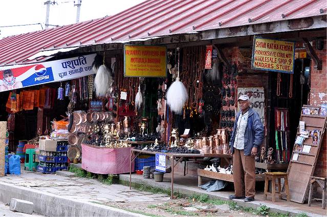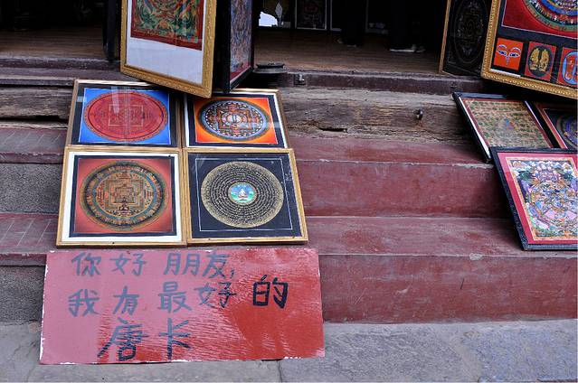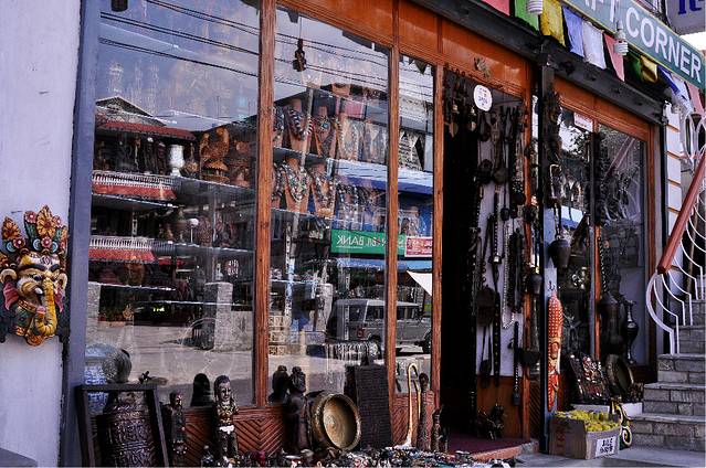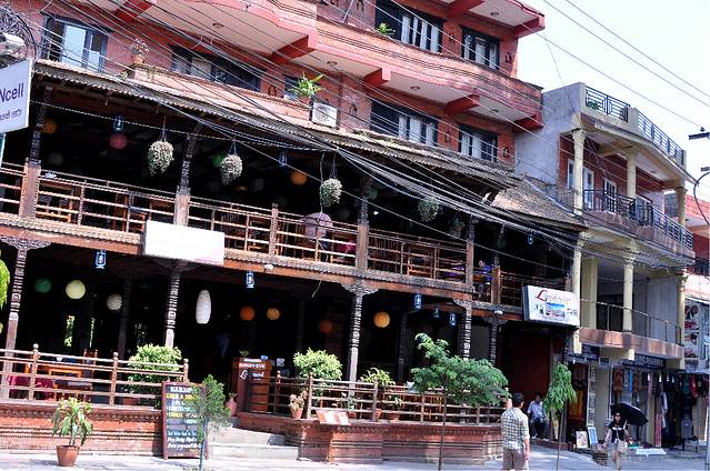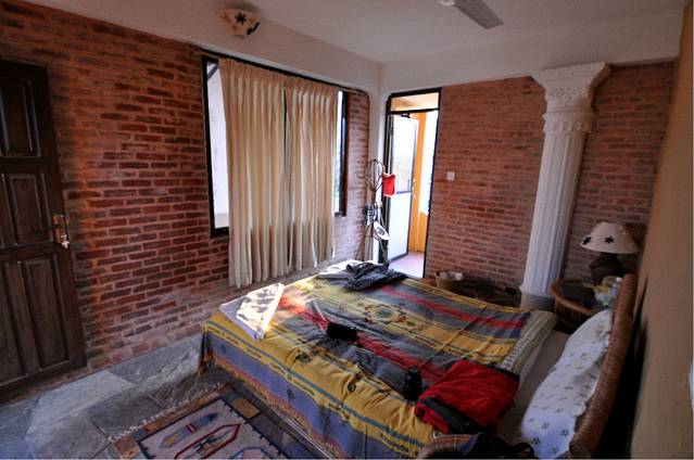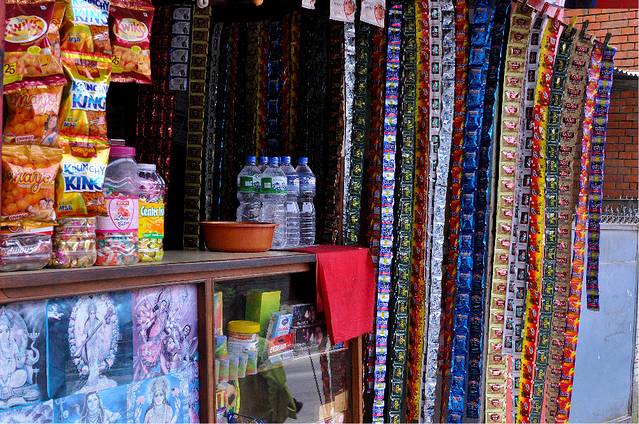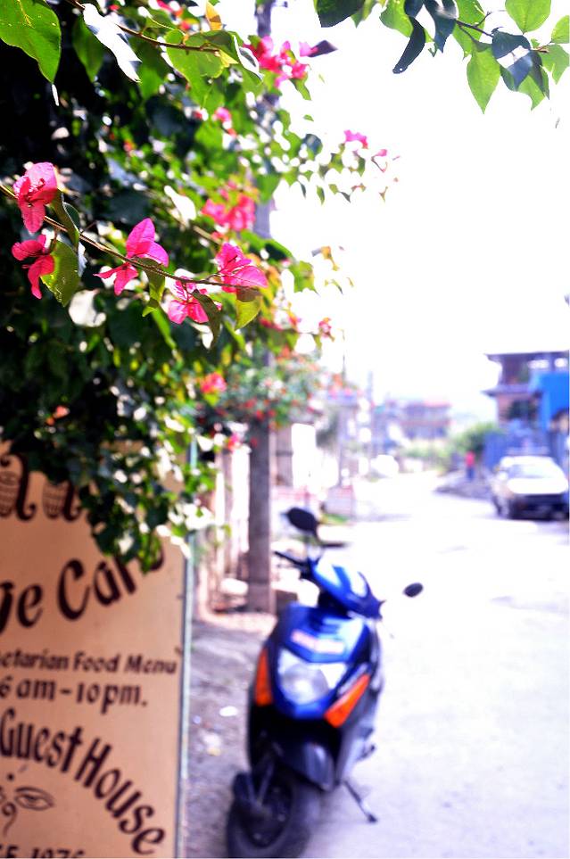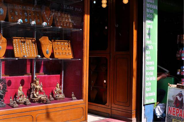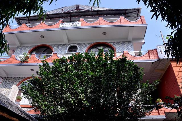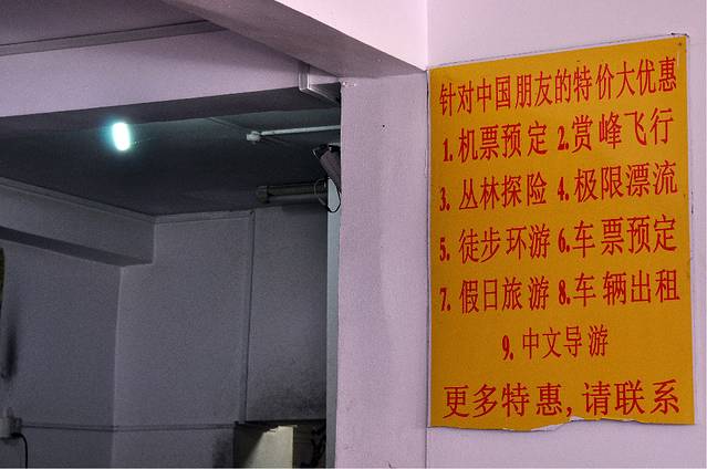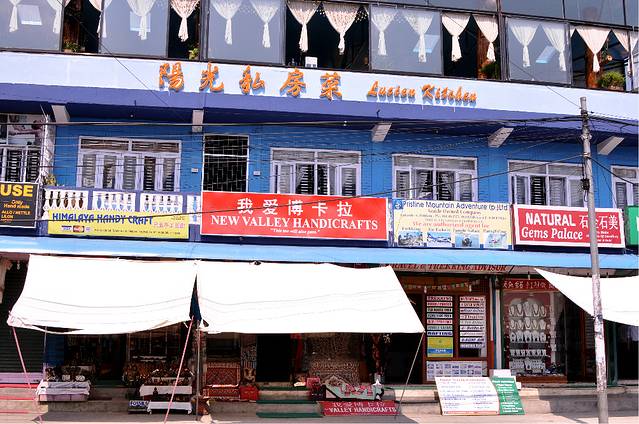 功略上说从加都机场打的到泰米尔区是200尼币,可我们怎么讲也讲不到,连300都不行,最后是400成交,估计是按每位200元收吧。后来我认出路来了,机场离“烧尸庙”不远,那天我们来“烧尸庙”是每台车四人250元,其实每台车300尼币从机场到泰米尔也就差不多了。司机倒也厚道,将我们送到旅店门口,还帮俺提那超重超重的行李拉杆箱(这该死的箱子也不知道为啥这么重,我也没装啥子多余的东西)。我和小吴决定还是住回阳光客栈,虽然这里房价并不太便宜也不是那么地舒适,关键是中国老板,有什么事情都好商量,而且楼下就有一间较大的超市,里面什么都有卖的。