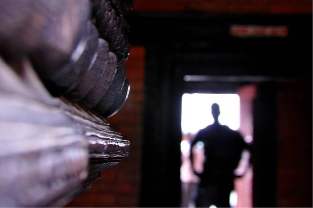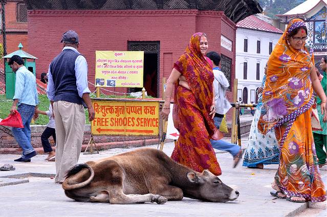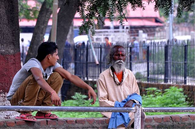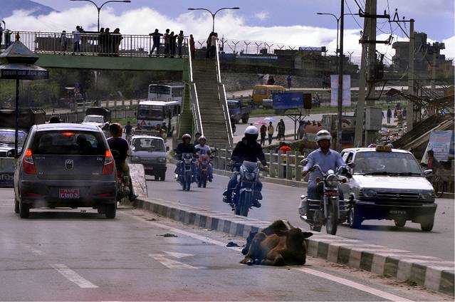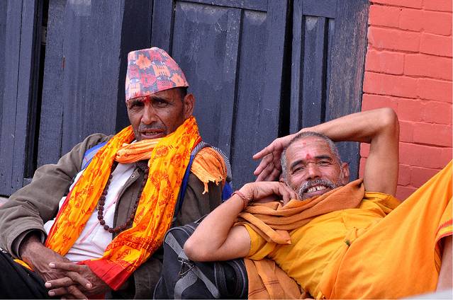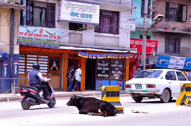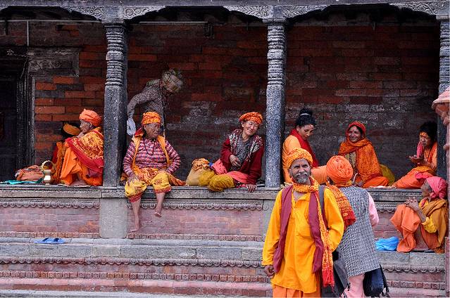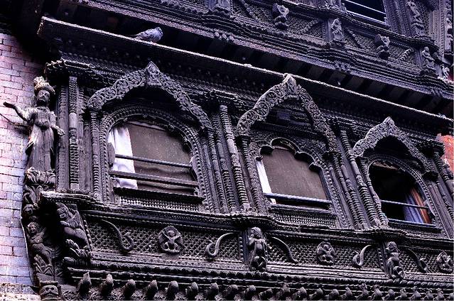 这个杜巴广场小了许多,但也安静和古老了许多,俺觉得更有味道些,三座广场比较喜欢这座,可能是下午的原因,斜阳下的广场光线很漂亮很美,这里中国人很多,整个广场除了印度教徒就是中国观光客了。在这里俺发现有座庙宇的上方梁柱上四周都是春宫木雕……发现一家藏得很深、环境很美的餐厅,进入消费也不算太贵,我们在这里填饱肚子,小休一阵后决定坐公车回加都。谁知那位送我们过来的司机楞是没走,追着要送我们回加都,一堆司机叫价都很高,他后来悄悄地跟着我们,见没别的司机了就跟我们说500可送我们回加都,小吴表示不想,我说无所谓啦,反正也不用跟当地人去挤公车,500就500吧,小吴MM嘟着嘴无奈地跟我上了车,自己却一下子就睡着了……一路向西行,太阳将车子的前座晒得很烫,司机一个劲地擦着汗,可能是下班高峰吧,有点堵;马路上尘土飞扬,牛羊穿梭,这些天来在尼泊尔景区看的不多,生活体验却有不少,真正体会到什么才是落后国家,俺祖国可是舒服太多去了,谁和俺说中国落后俺和谁急去!