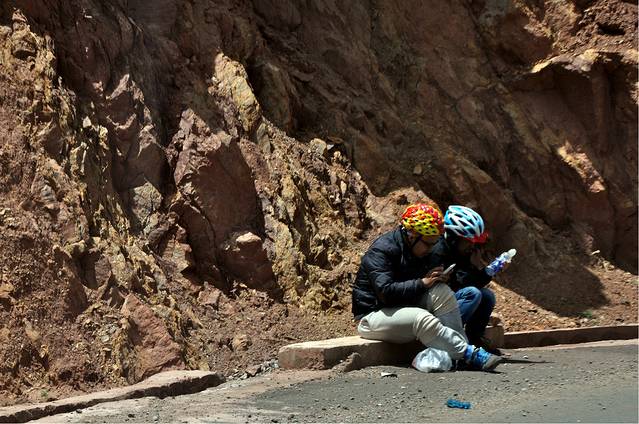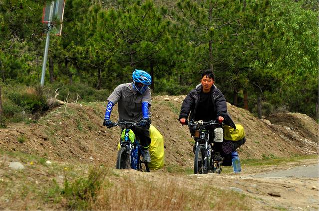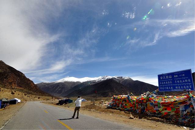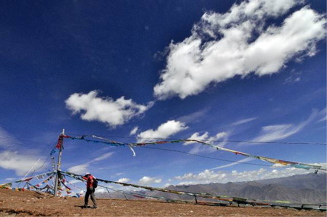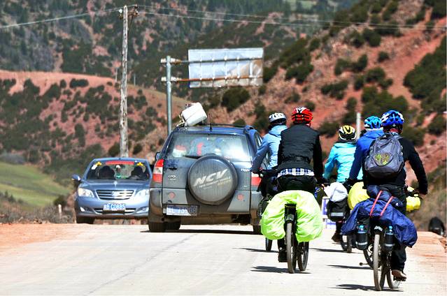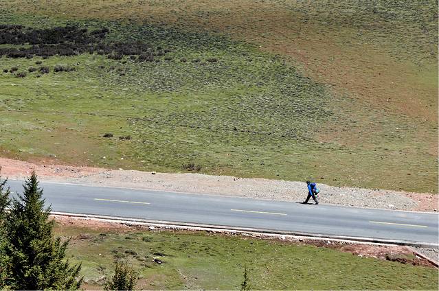 让人鸡血喷张的318上,果然见到很多骑行的青年人三五成群地喘行着,还有三位徒步者,俺们都不得不佩服这群勇敢的人……