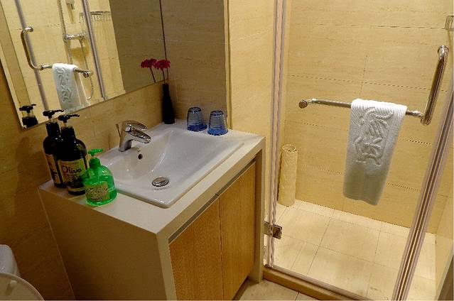 路上被旅行社的工作人员来电告知,愿不愿意和另一位团友拼房,这是好事,我答应了。俺在网上预订的这间度假公寓很不错,很新,属楼盘小区的一期还没卖出的属性,后面的二期才刚刚拆外墙,房间里应有尽有,关键是全新——新得让俺在洗手间的湿区淋浴时差点出不来,那玻璃门关过头了,被新塑料胶边紧紧地夹在了里面,俺费了好大劲,就差没差点踢烂玻璃门了,好尴尬地说。