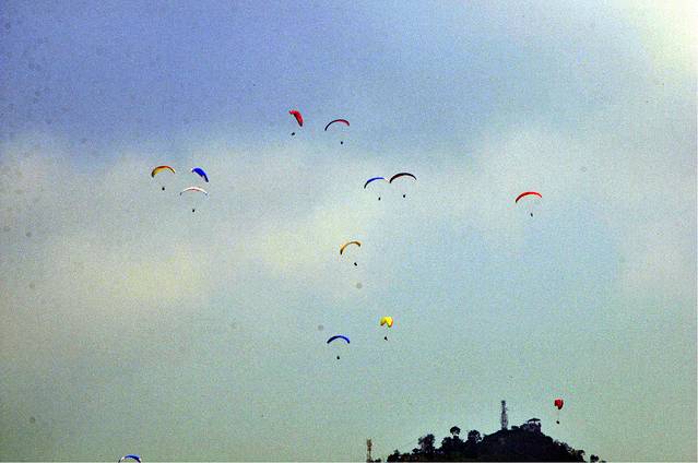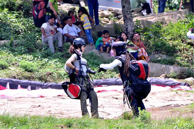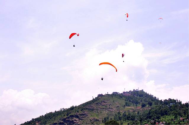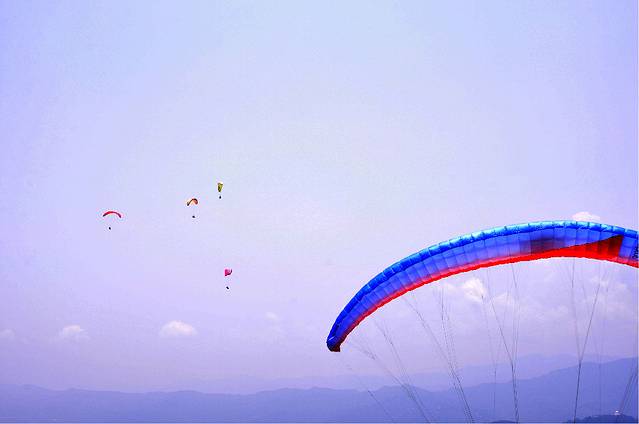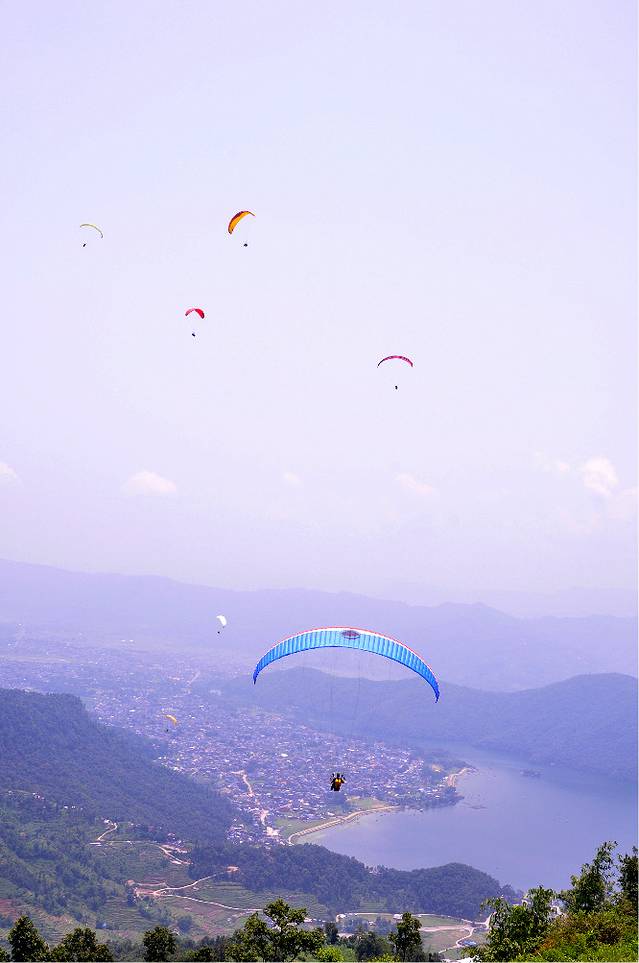 在俺住的那房间可拍到玩滑翔伞的人,靠!姐的镜头这么脏!全是尼泊尔的灰……