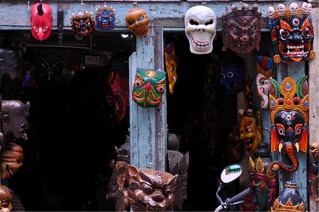 其实俺觉得不一定非要住这家阳光客栈,不过它胜在可选择的客户较多,可从从单间到小单间到8人房到16人房都有,床铺也算干净,只是硬件稍差些,不讲究的还是可以选择这间客栈,出门就是专售尼泊尔工艺品的专业区泰米尔,离加都的新区也不算远。昨天我和小吴就跑去“新区”看了看,发现有唯一的KFC、批萨客,还有一批潮一点的服装专卖店。在这儿吃东西除了要付10%的服务费外,还需再付13%的政府税,等于要多付23%的价钱,包括后来俺下午去的景区猴庙,那怕喝杯冰咖啡,也要多付那23%,如果想省钱穷游的人,这两个地区(包括一些观光区)就尽量别消费了,不然那多付的23%都可以再喝上一杯了……