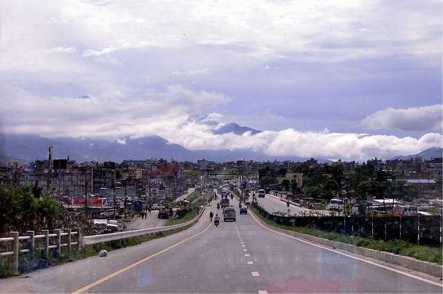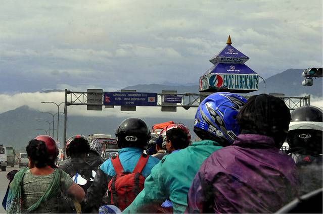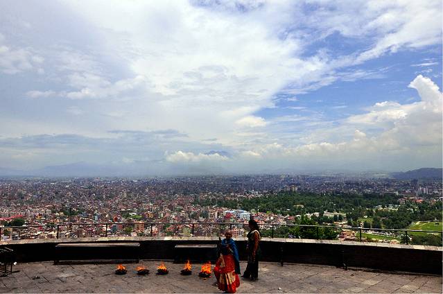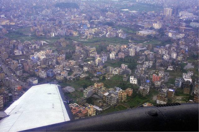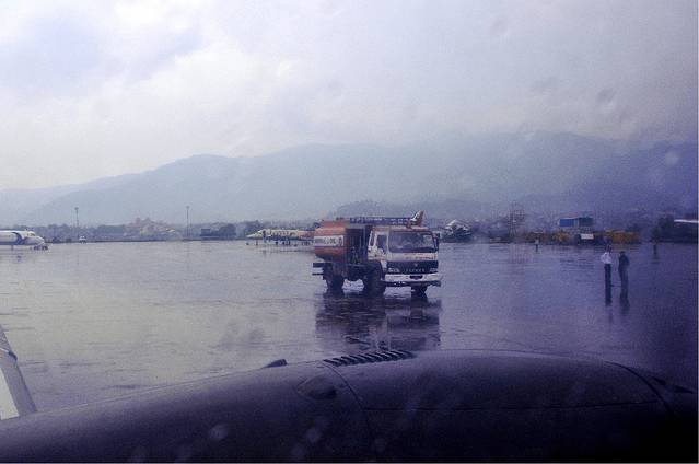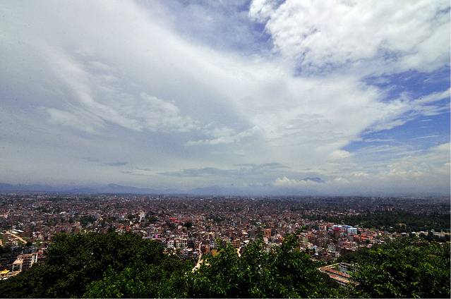 小飞机起飞后,没我想像的那么颠簸,害俺还不敢吃早餐,怕被颠了出来;飞机上有一位空姐,拿了一盒棉花和糖果,俺也不知是啥意思,就只拿了一颗糖吃,原来其它本地人是来棉花来塞耳朵的;飞机并不吵,我是不需要塞什么耳朵啦;一会儿空姐每人发一小包花生米,派一杯汽水,喝完后刚好飞机下降,不用25分钟就到达加都了,哎呀比那三天前来博卡拉舒服多了去,省时又省力,就是不省钱……结果是喜马拉雅山压根没看到,还下了一地的雨,这会儿刚是六月初,尼国的雨季开始了,对于旅游的人来说,并不是什么好事情。