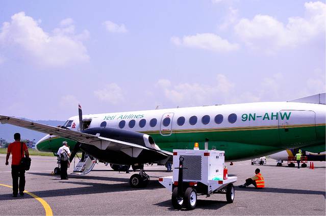 分属三个航空公司,最后面蓝色的那部是坐去看喜马拉雅山鱼尾峰的