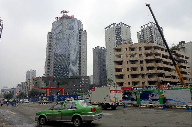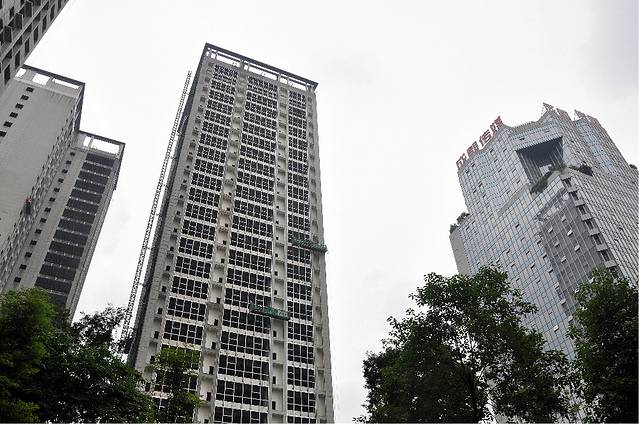 红星二段外的主干道上正在修地铁,高楼是成都传媒,我就住在旁边的小区