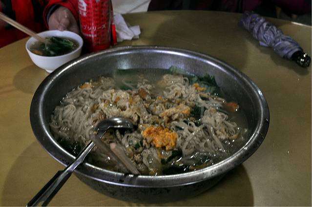 6:45,银山客饭一盆鸡蛋煮面打发了我们。