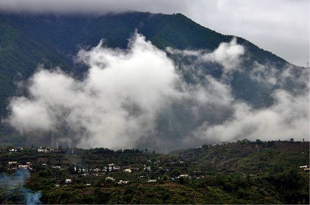 下山回程路上的山景依然很漂亮,白雾了绕着群山,虽然还在下着小雨……
