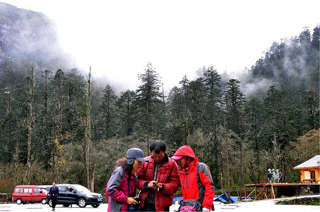 司机接上另外两位拼车的团友,一位是“硬汉”小李,一位是香港的小何,约好另外一台车的四位客人,两台车连司机共10人约在7:30冒雨从成都出发。