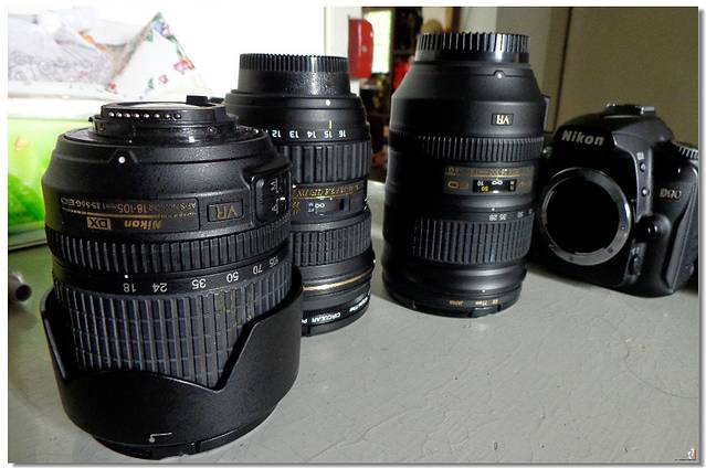依然是我的旧爱D90,加11-16、18-105、28-300三剑客,码数包包超重!哦,还有三角架少不了,没准夜晚还要拍拍星星月亮什么的,还有一支小片片机,索尼的W690