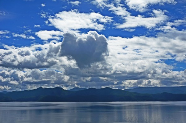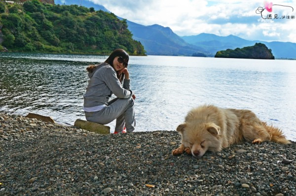一路颠簸7个小时到了泸沽湖,看到那一汪蓝天碧水,暖暖的阳光照在身上,顿时觉得路途上的劳累是值得的。而且我们的运气还比较好,导游说泸沽湖前几天还在下雨,今天就晴了,阳光下的泸沽湖显得那么静美神秘。