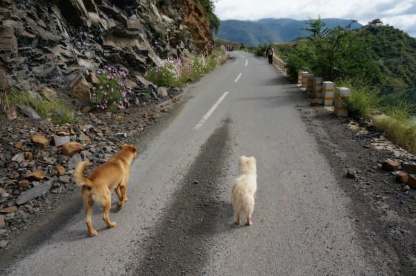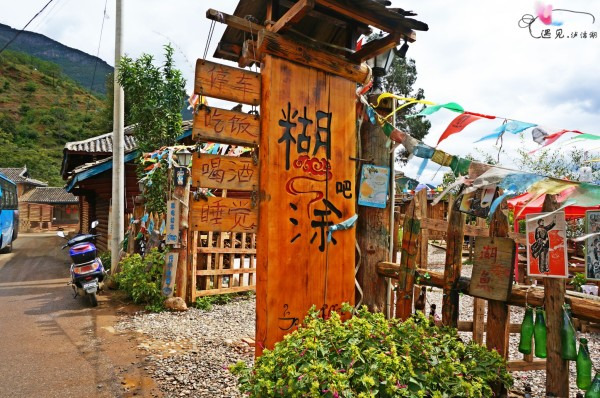 传说中的五彩里阁,和其他客栈的建筑外形相比,确实很吸引人,门前大片的格桑花。