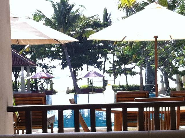 4月28日出发,5月3日结束,说是4晚6天,实际上就是4天,第一天,就是4月28日下午16:00的飞机,提前三个小时到机场,结果飞机晚点,5点半才出发,这就是第一天,什么都没干也算是一天,凌晨12点半到达目的地。到达酒店后两个人发一张房卡,8张早餐券,每天早上往床头要放1美元的小费,酒店环境还不错的,算是海景房,下面有泳池和海边。