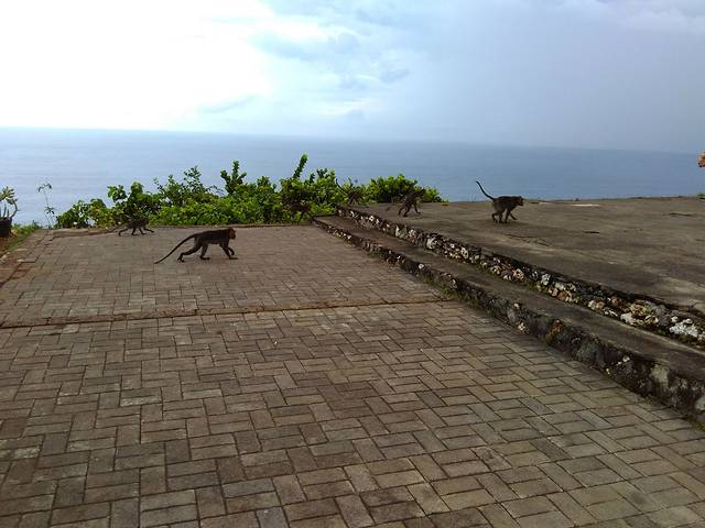 第5天的时候本来也算是最后一天了,因为这天晚上,夜里我们就要去机场坐飞机回家了,想着最后一天早上早点起床去海边看日出,早上5点半我就起床了,去阳台一看,大片的乌云,阴天了,没有日出,结果又回去睡觉,早上8点多吃完早餐,导游带我们去情人崖和海神庙,不料中途就下雨了,情人崖真是太太美了,从情人崖上面就能看到碧蓝碧蓝的大海,海浪一个接一个,很慢的涌过来,还有大漩涡,真的太美了,情人崖上面有好多猴子,一叫就从丛林里面跑出来十几只,去旁边的下午茶的桌子上捣乱,抢香蕉,踢杯子。之后紧接着去了海神庙,去海神庙的时候雨越下越大,大海的浪一个接一个,晚上6点多,最后一天晚上没有餐,是自理的,特别饿,在海神庙附近的餐馆吃了份炒面,还不错,最后一站式洋人街,洋人街离机场是最近的,我们只能去洋人街消磨时间,多余的卢比在国内是花不掉的,所以只能在洋人街的小超市给花掉了。10点时候我们就去了机场,就算是行程结束了。本次的总花费大概是13000左右,跟团的旅游费4800一个人,2个人9600,去巴厘岛自费项目,自由活动吃饭,买东西(买的最多的是精油,那边的精油真的很好用,我买了好多瓶,小瓶的精油是11美金1瓶,鸡蛋花的最好闻,特喜欢这个,还买了海藻的精油,是30美金一瓶,其他的就是给朋友买了些小纪念品和一些当地的糖果),买纪念品以及落地签证35美金/人,离境税150人民币/人,总共花了3000左右,总花费大概13000,还是很不错的,因为我们没有买奢侈品,去的时候换了5000人民币的美元,805美金,如果不买大件商品足够用,根本花不完。