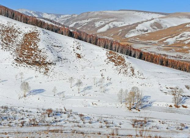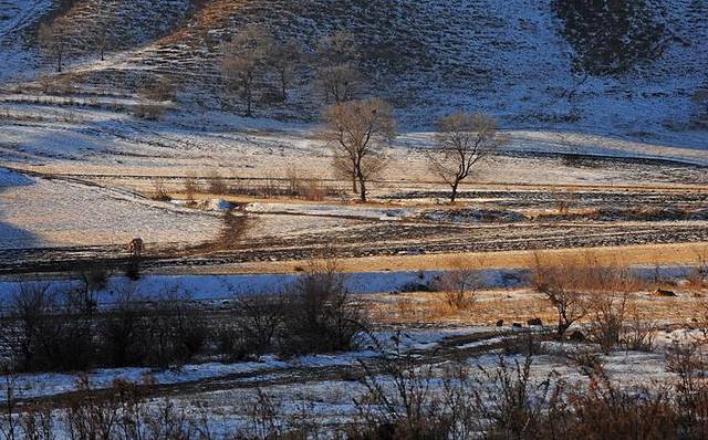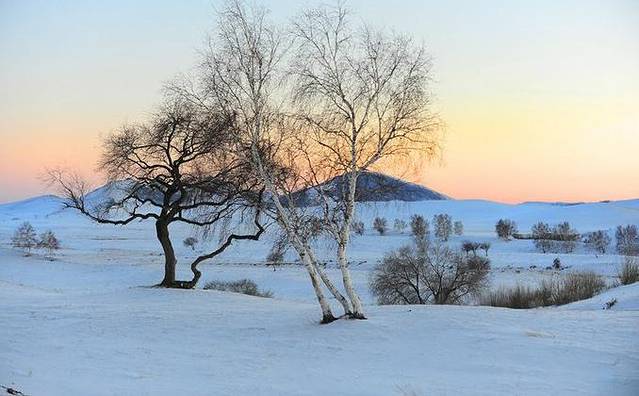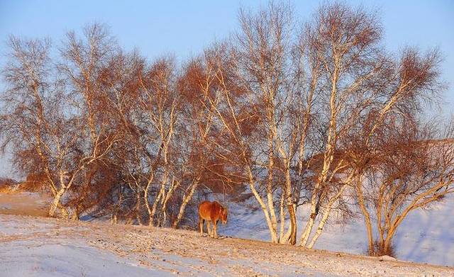 驱车边走边玩,很快就抵达了乌蓝布统镇,提前安排好住宿后驱车到将军狍子附近去拍日落景色。冬季这里山坡上、山坳里银装大地层层叠叠优美无比;白桦林、针叶松树林披上雪挂。寒风中、傲雪中的马群、牛羊彰显着生命与大自然的和谐。哪里有看不够看不完的壮丽景色。这与夏景色对比就完全变成了另一幅动人景致!