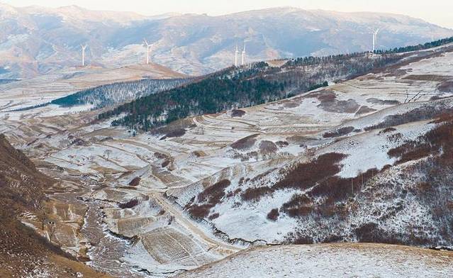 下午大约3点半抵达了河北与内蒙交接。大地上、山坳间一片雪的世界。景色壮观!