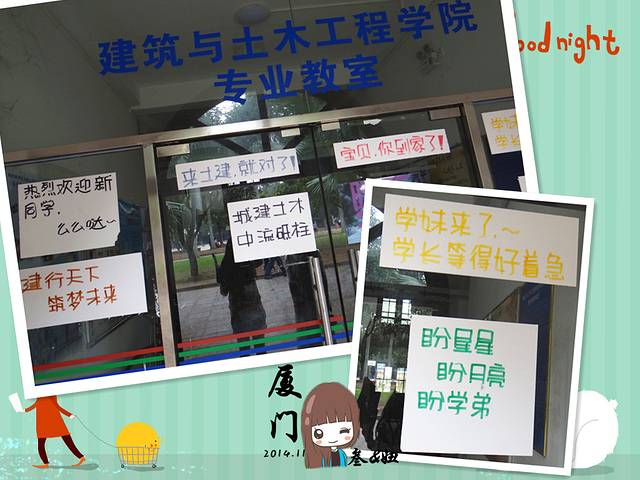 话说我俩打车来到厦大,也别问我是哪个门儿,我也不知道.........看到已经N多人在排队了,排队的时候一直有黄牛在旁边忽悠你,说中午只放300人进去什么的,让你加点钱他直接就能把你带进去,不用排队等等。网上是好像有限制人流量的说法,不过我俩坚定的随大流最后也还是进去了o(^_^)o。刷了身份证还可以领一张漫画版的免费厦大地图,所以也不用买排队时各种大姐向你推荐的厦大地图哦~~
