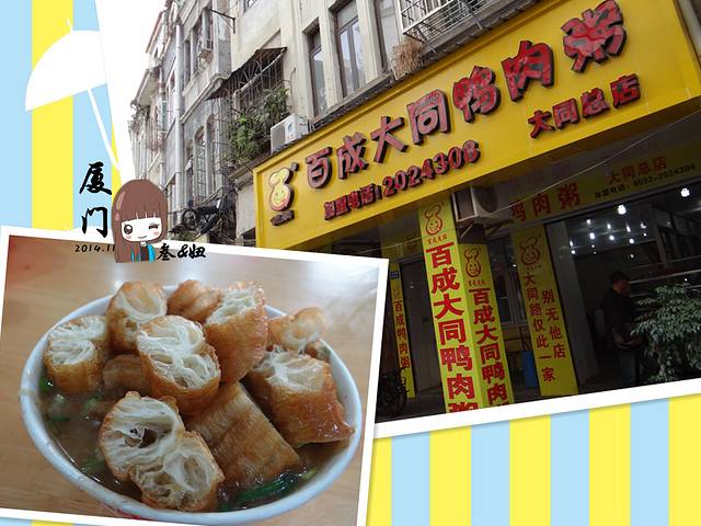 就是各种鸭子的卤制品、油条什么的 自己选择加到粥里面 老板根据加的东西算钱