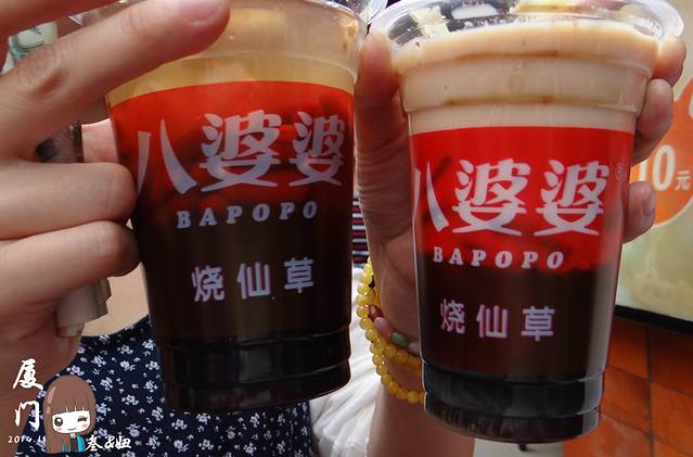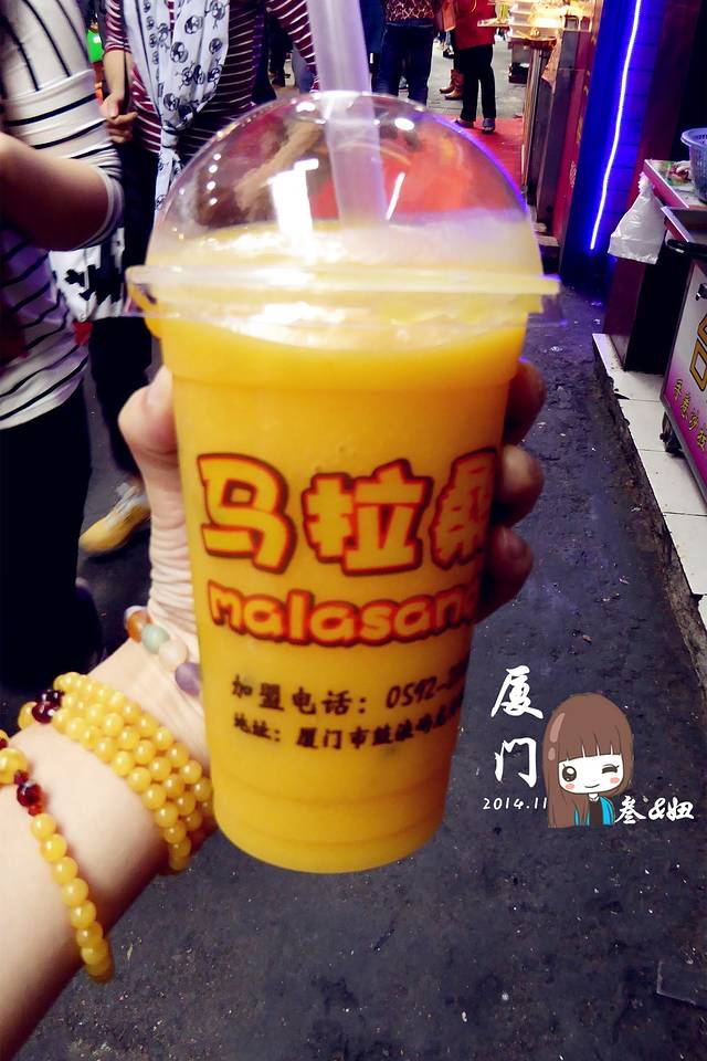 五块钱一杯,里面的料给的很足,~貌似只有蜂蜜和奶茶两种口味吧,所以就算是排队也很快就能轮到了。中山街八婆婆旁边还卖小笼汤包,热腾腾的汤包刚出炉的样子非常诱人,只可惜我俩眼大肚子小,已经塞不下了...........