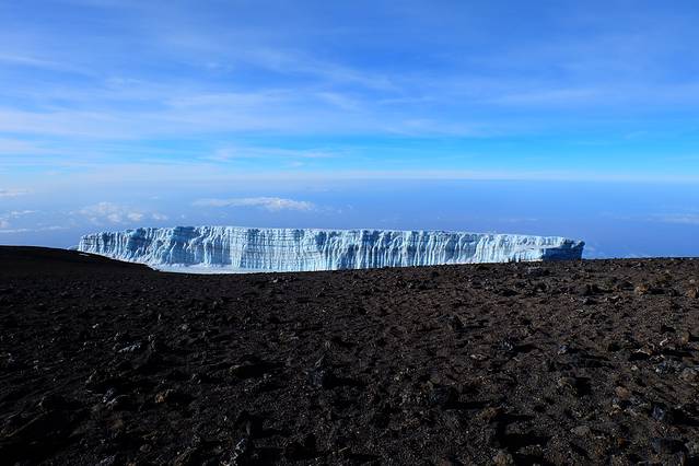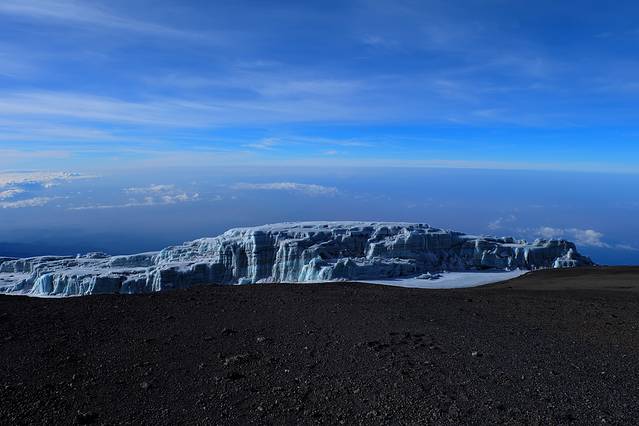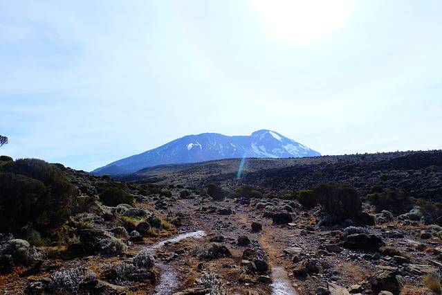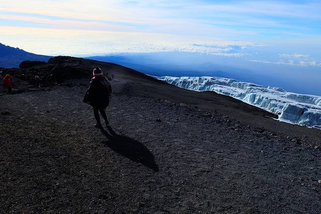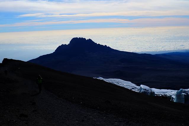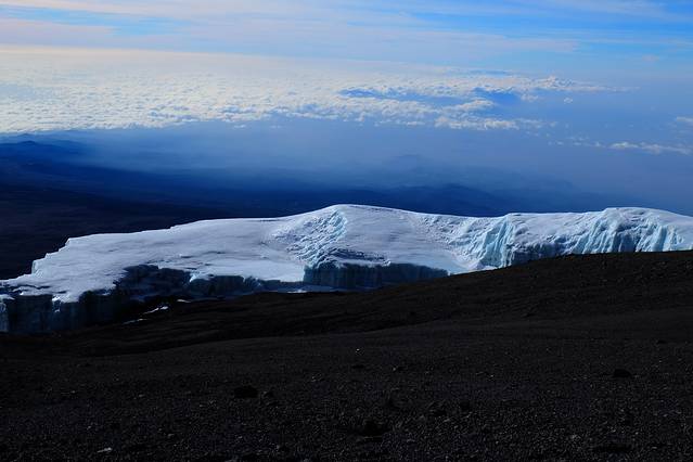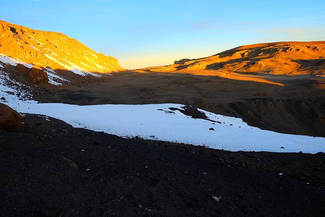 出发时候的乞力马扎罗,地上那亮晶晶的其实是冰