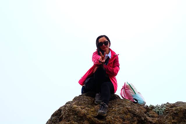 由于我的向导带走了另外一个向导的午餐,然后我又走得快,所以中午吃完午餐在半途等了1个半小时,山上一停下来就会很冷,因为过了中午就开始起雾刮风了,所以我各种上蹿下跳。