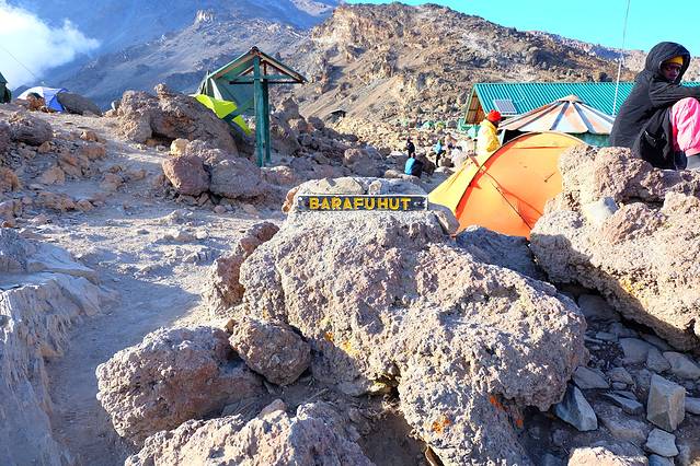 午饭点名称karang hut 海拔:3930米。再往上一个营地名称barafu hut 海拔:4694米。