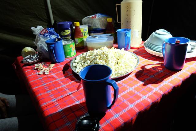这是大概下午4点左右的小点心,爆米花配咖啡或者可可之类的。