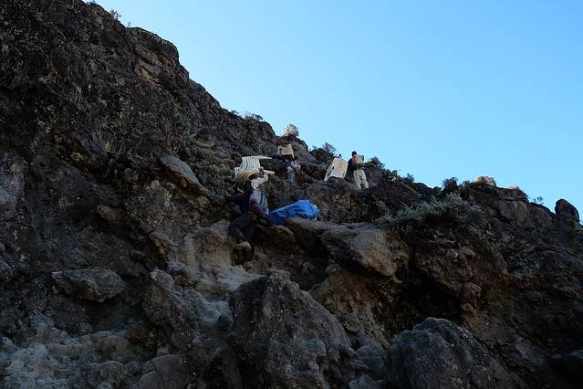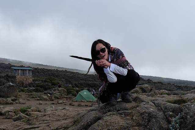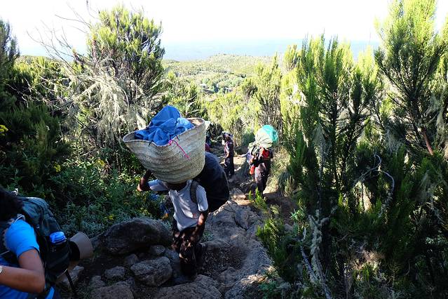 因为吐了这么多次,整个人呈现一种虚脱的状态,走一段就需要休息一下,但是joy不同意了…让我快回营地,我都快死了,找到石头就蹲下,要求10分钟休息,各种讨价还价,我让他先回去,我要去路边小山洞躺1个小时,我知道回去的路,我一会儿自己回去,反正各种拉扯,就是让路人看笑话…路上遇到的法国女孩儿说,他就像你爸爸,你就像个耍赖的女儿后面是joy认识的背夫背我回的营地…(其实一路走来,我这中国来的小妹子蛮有特色的,所以很多人都知道我,在他们眼里我也是一朵神奇的花,前面4天爱唱歌的女汉一枚,结果登顶的时候却漏气了,然后各种大哭,现在居然被背着下山)所以一路下山,有见到认识的我就告诉他们,我现在不是中国女孩,我来自日本…其实我想说,睡眠是良药,给我一个小时的睡眠,我可以自己走回去的。