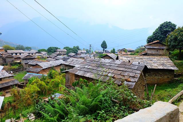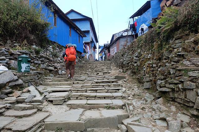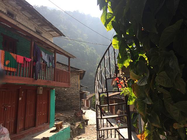 徒步第8天:今天依旧是阴天说哦,所以一早起来木有看到大大雪山冰激凌,但是这一路已经够幸运的啦,人应该要知足,知足。tip:chomrong是分岔路的开始,今天有两个选择,可以从chomrong到ghandruk,也可以从chomrong到jhinu。两个选择有啥区别呢?一路的小伙伴告诉我,大概就是ghandruk有中世纪的古建筑,还有美美的梯田,以下会上图。jhinu下去有超级无敌便宜的温泉,可以洗去一身疲劳。我选择了ghandruk。