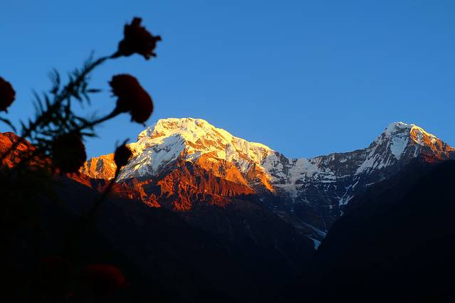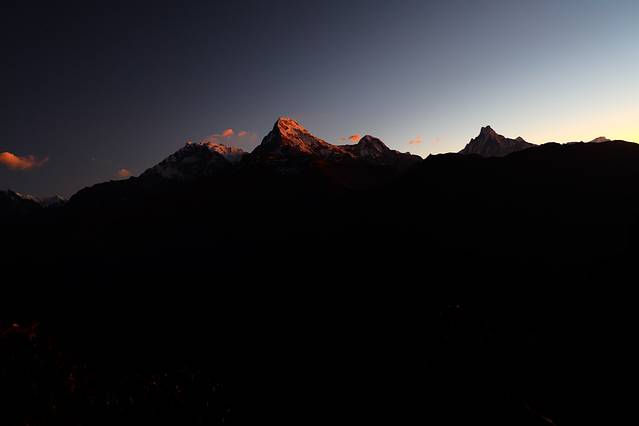 徒步第三天:重头戏来啦~~~4点早起上布恩山上看日出。时长:1个小时上山,须原路返回ghorepani,所以不用带行李哦。(PS:经过一路上走过ph走过ABC的大家一致鉴定,布恩山的日出比ABC的还要美,一排的雪山冰淇淋在你的面前,那感觉,你懂么? 也许只有你身临其中你才能感受到那种“值了”的感觉。)