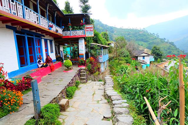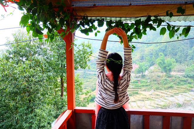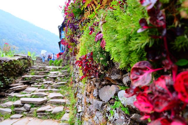 第一天徒步tip:①下午1点就到达hille了,过过过早,以至于我不敢相信。。。。所以建议可以走到ulleri再休息。hille木有啥信号,看不到雪山,一个小小村子。不过当晚应邀和一群法国大叔大婶一起聊天,参观尼泊尔人的厨房各种的,也算是小小有点娱乐啦。②第一天看不到爱的冰淇淋,但是沿途是各种花花草草,还有色彩缤纷的小房子,尼式小生活就是,屋子再小,虽然不富有,也要有个房前屋后的小花园。